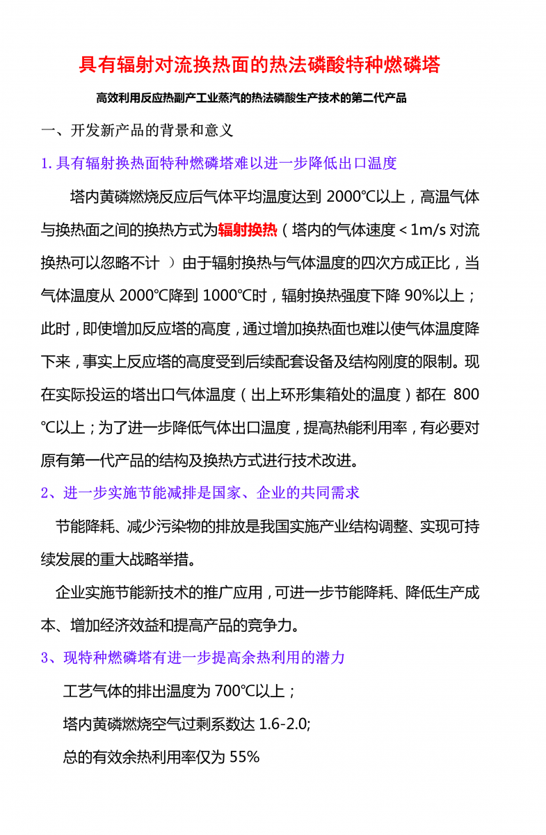 我公司專利產(chǎn)品--熱法磷酸反應(yīng)塔第二代已研發(fā)成功